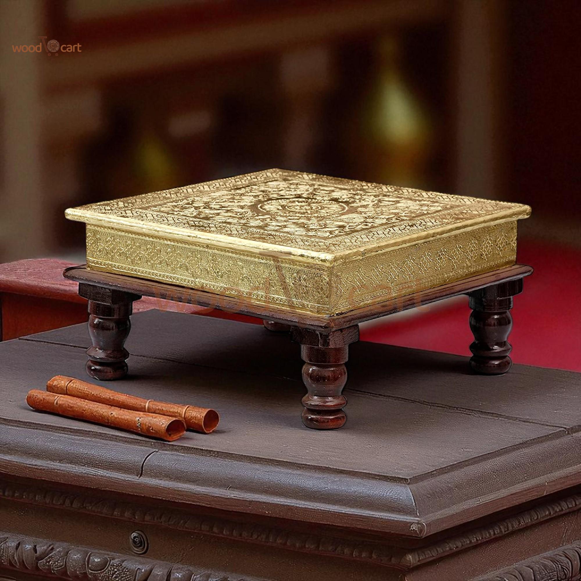 Wood & Brass Chowki for pooja || Pooja Squre Bajot