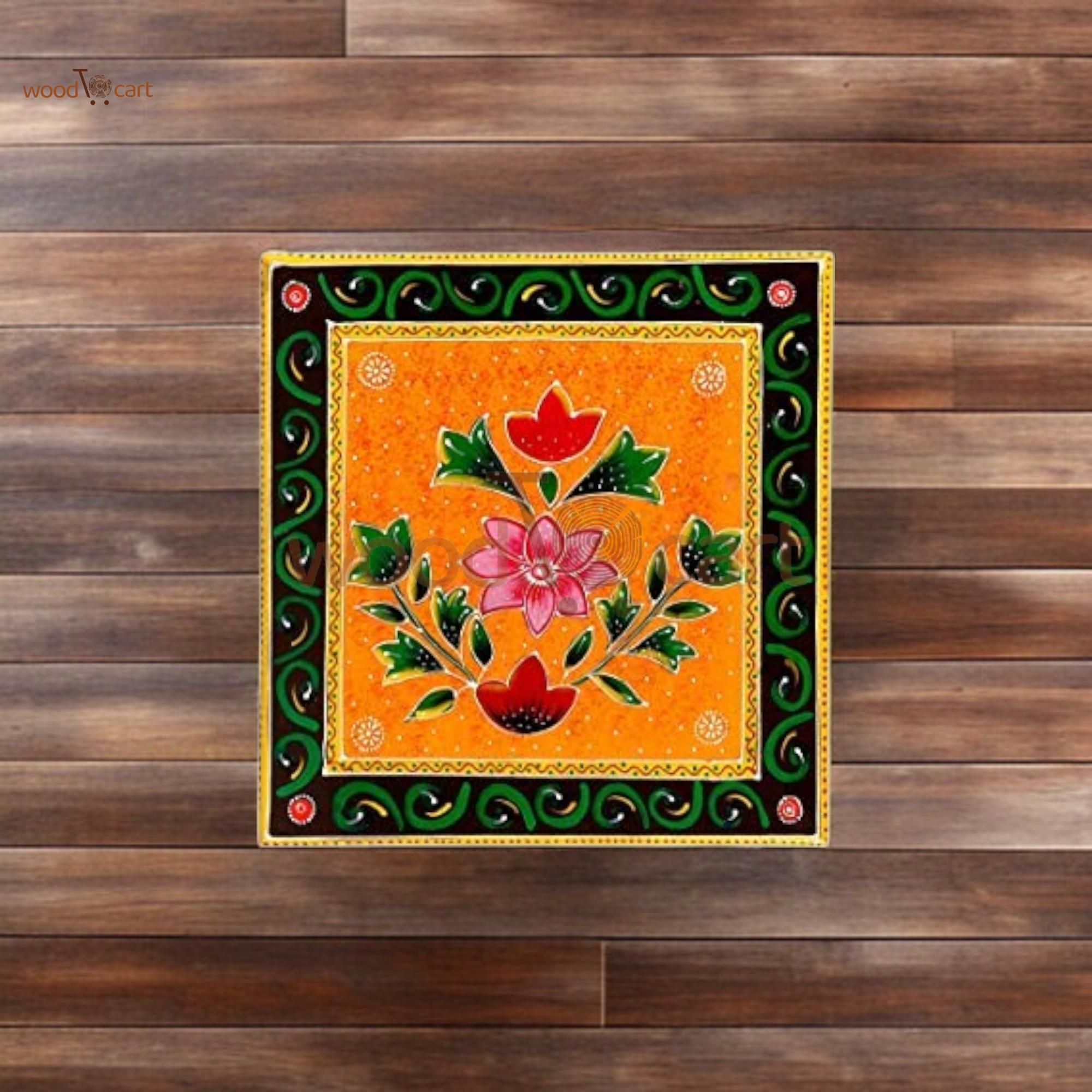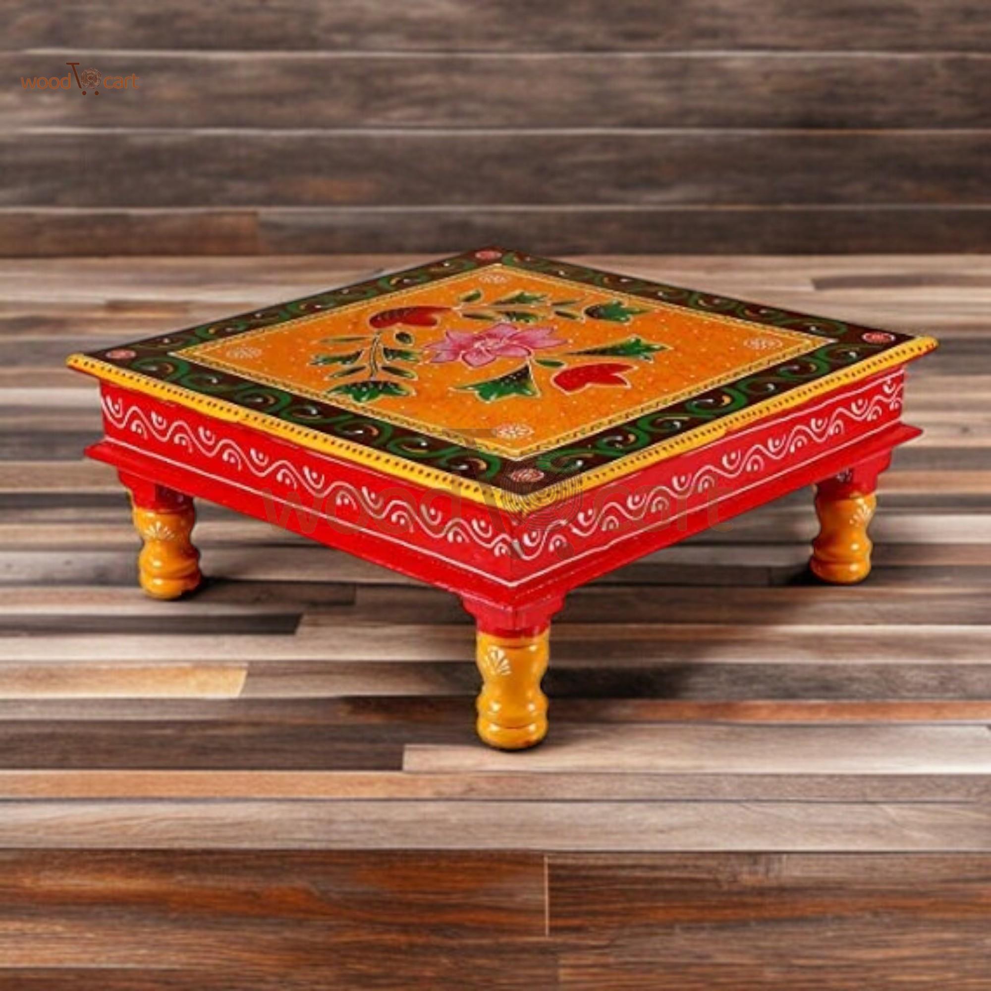 - Embrace the vibrant spirit of Rajasthan and personalize your sacred space with this exquisite wooden handmade pooja bajot from Wood to Cart. Crafted from high-quality wood and adorned with intricate designs, this beautiful piece is sure to add a touch of elegance, tradition, and a unique reflection of your devotion.Functionality meets artistry: More than just a stunning visual, this pooja bajot prioritizes practicality. Its spacious surface offers ample room for all your pooja essentials, while the sturdy wood construction ensures longevity.Free Shipping on All Orders in India! Wood To Cart: Bringing Handmade Beauty to Your Home